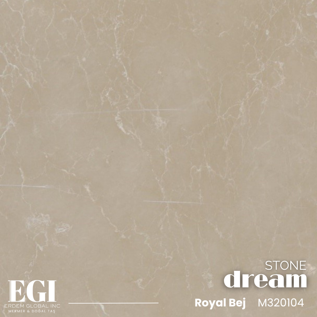 Royal Beige mermer, doğal tonları ve zarif dokusuyla bilinen, özellikle lüks iç mekan tasarımlarında tercih edilen bir mermer türüdür. Bu mermer, açık bej rengi ve ince damarlarıyla sade ve zarif bir görünüm sunar. Royal Beige, sıcak ve doğal bir atmosfer yaratmak isteyenler için ideal bir seçenektir.